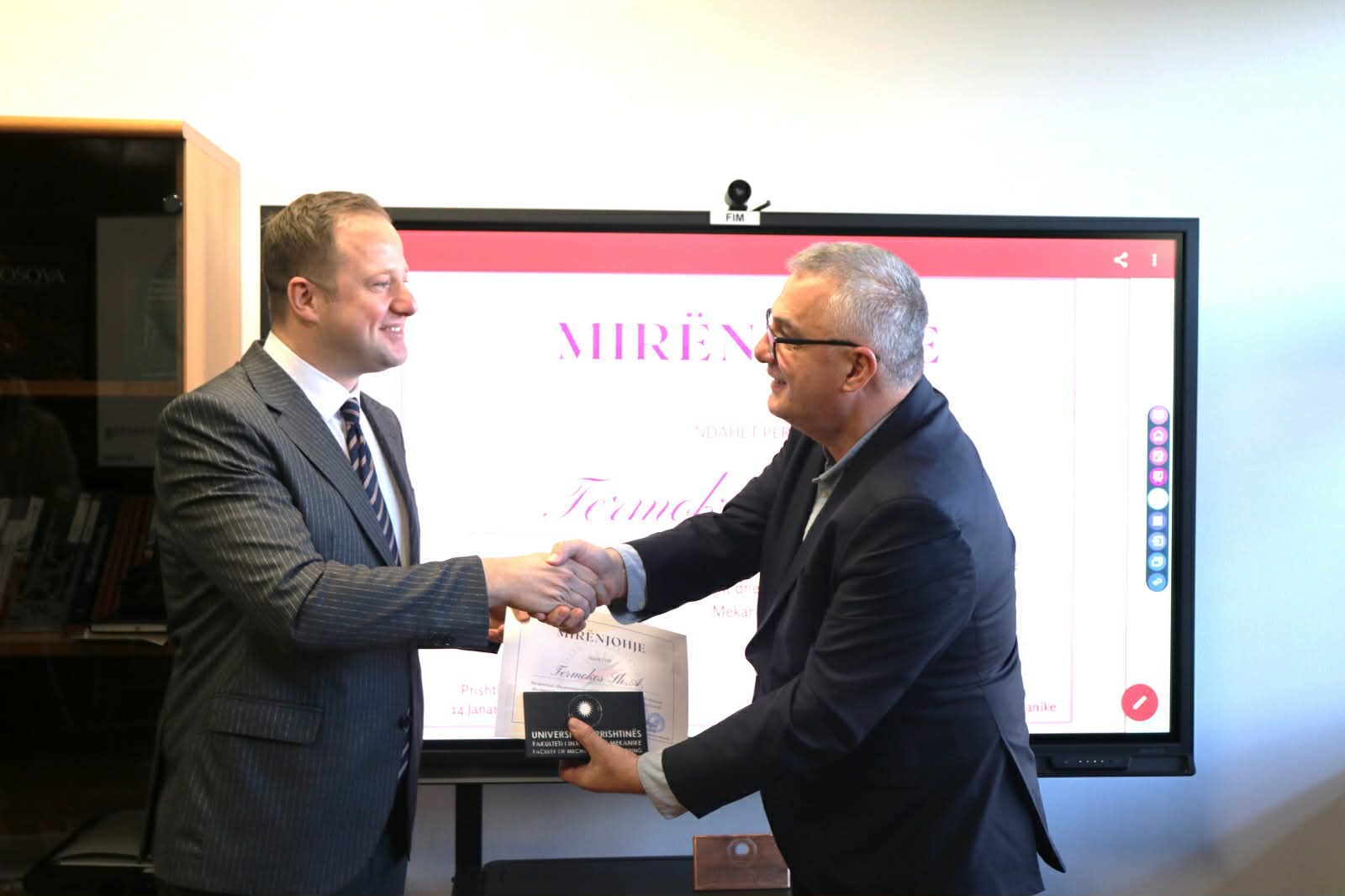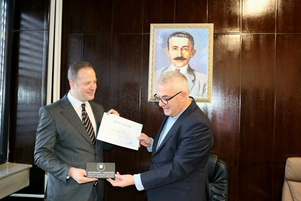 U.d. i Kryeshefit Ekzekutiv të NP “Termokos” SH.A., z. Kastriot Bllaca ka pranuar sot një mirënjohje dhe një trofe nga Dekani i Fakultetit të Inxhinierisë Mekanike, prof.Mirlind Bruçi, në shenjë mirënjohje për kontributin dhe përkrahjen, që ka ofruar ndërmarrja për stafin dhe studentët e këtij fakulteti.